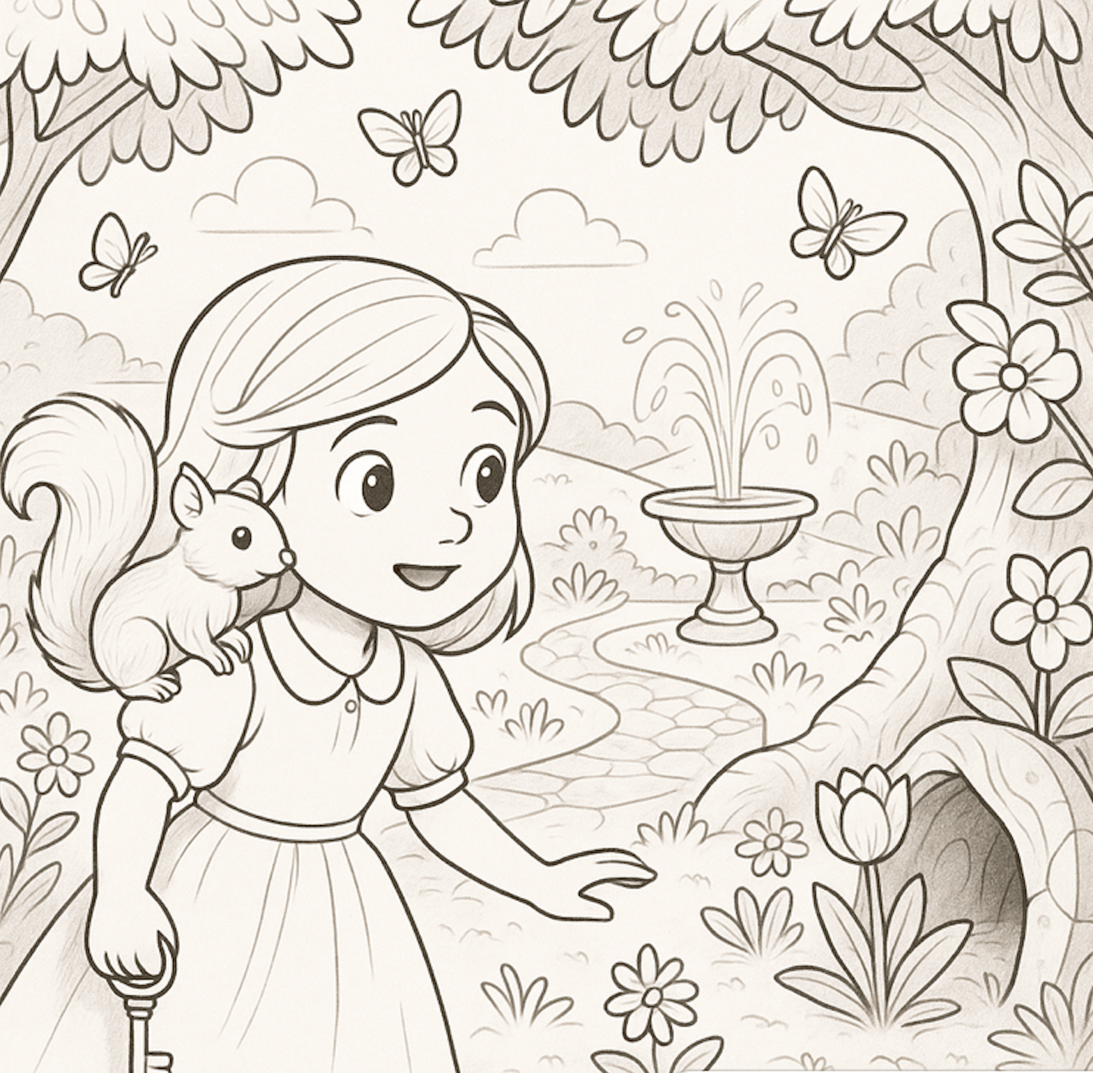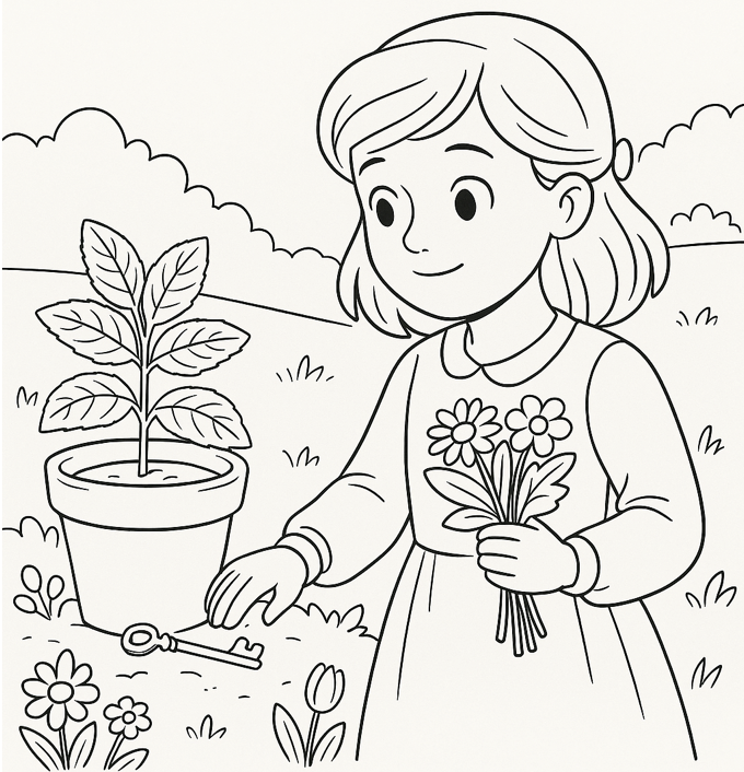 Un matin, alors qu’elle cueillait des fleurs dans le jardin de sa grand-mère, elle aperçut une clé dorée cachée sous un pot de menthe poivrée.