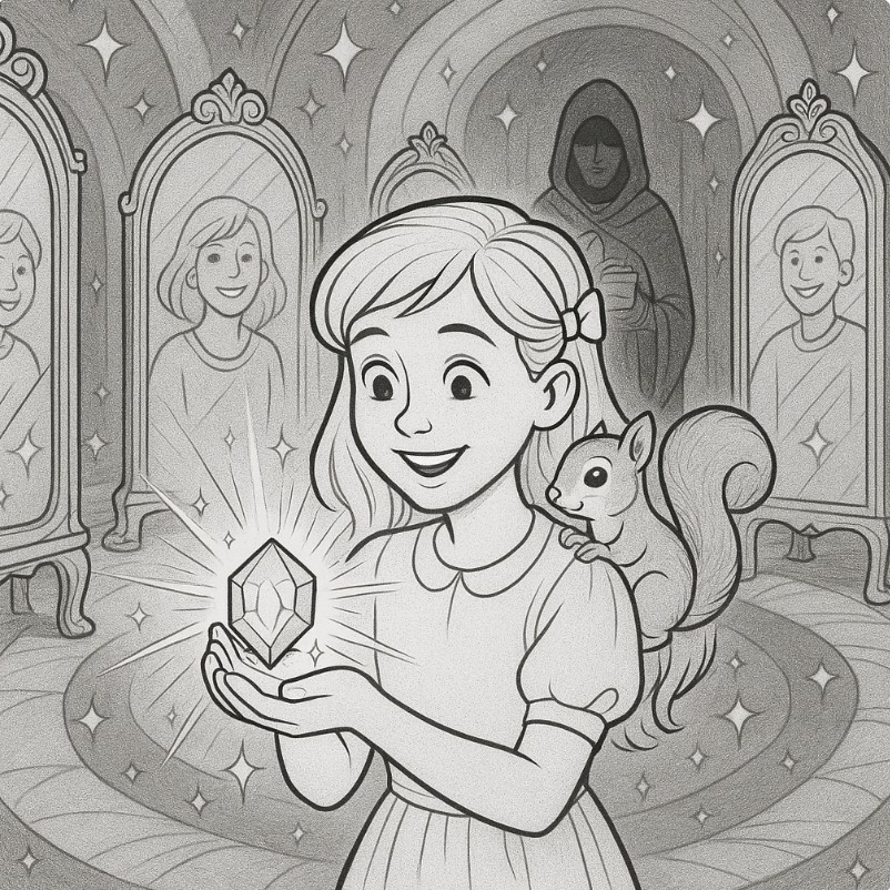 — Voici le Royaume des Miroirs Éternels. C’est là que se trouve le dernier fragment, chuchota l’écureuil. Mais prends garde… ici, les miroirs ne reflètent pas seulement ton visage, ils montrent aussi tes peurs et tes regrets.